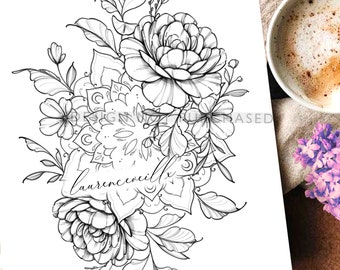 Instant Download Tattoo Design Flowers And Mandala Tattoo Etsy